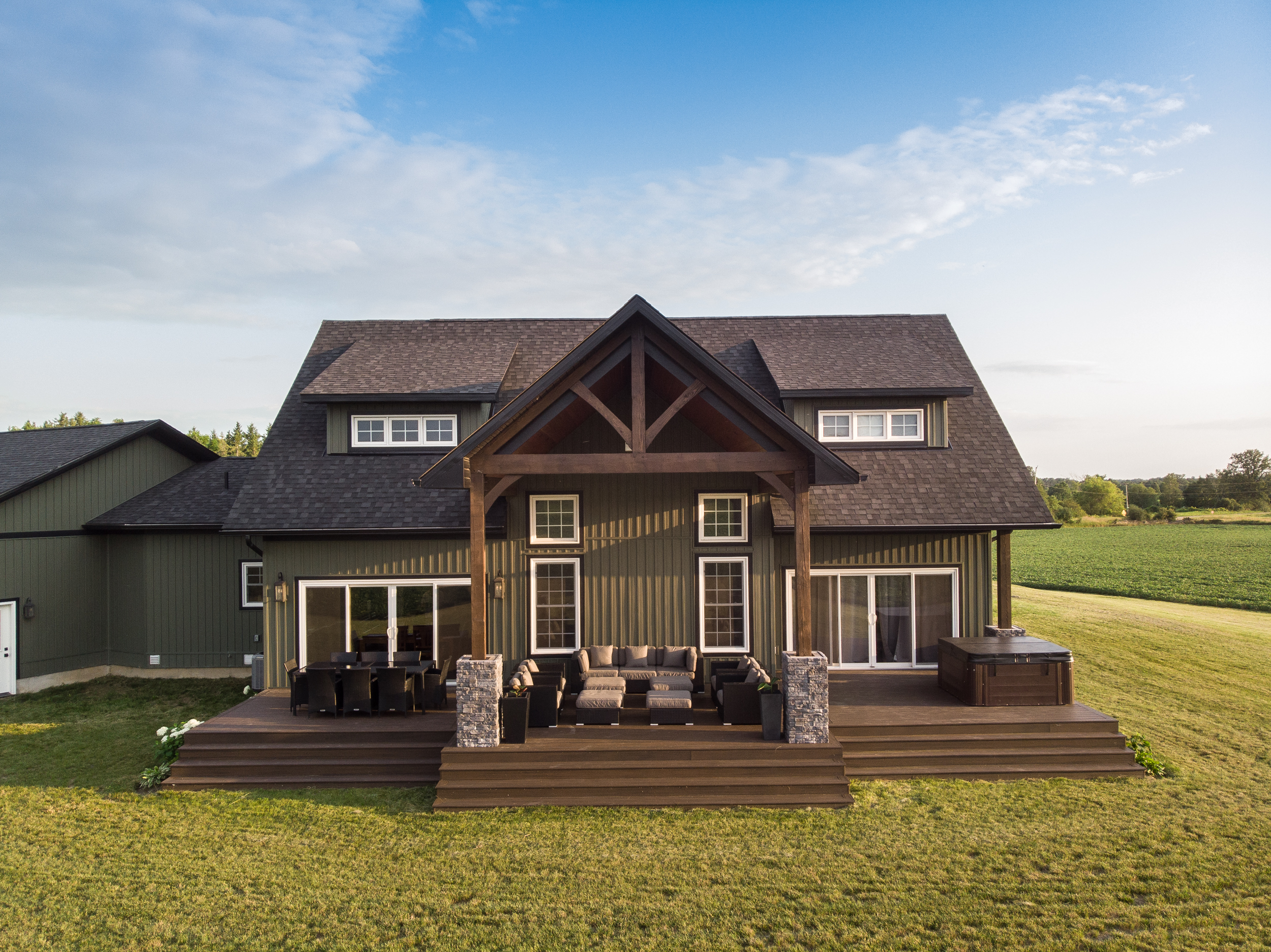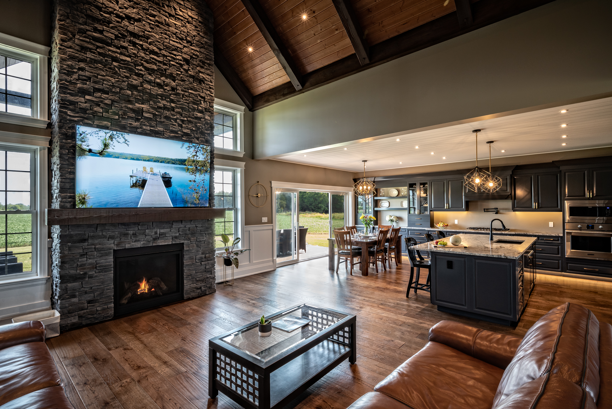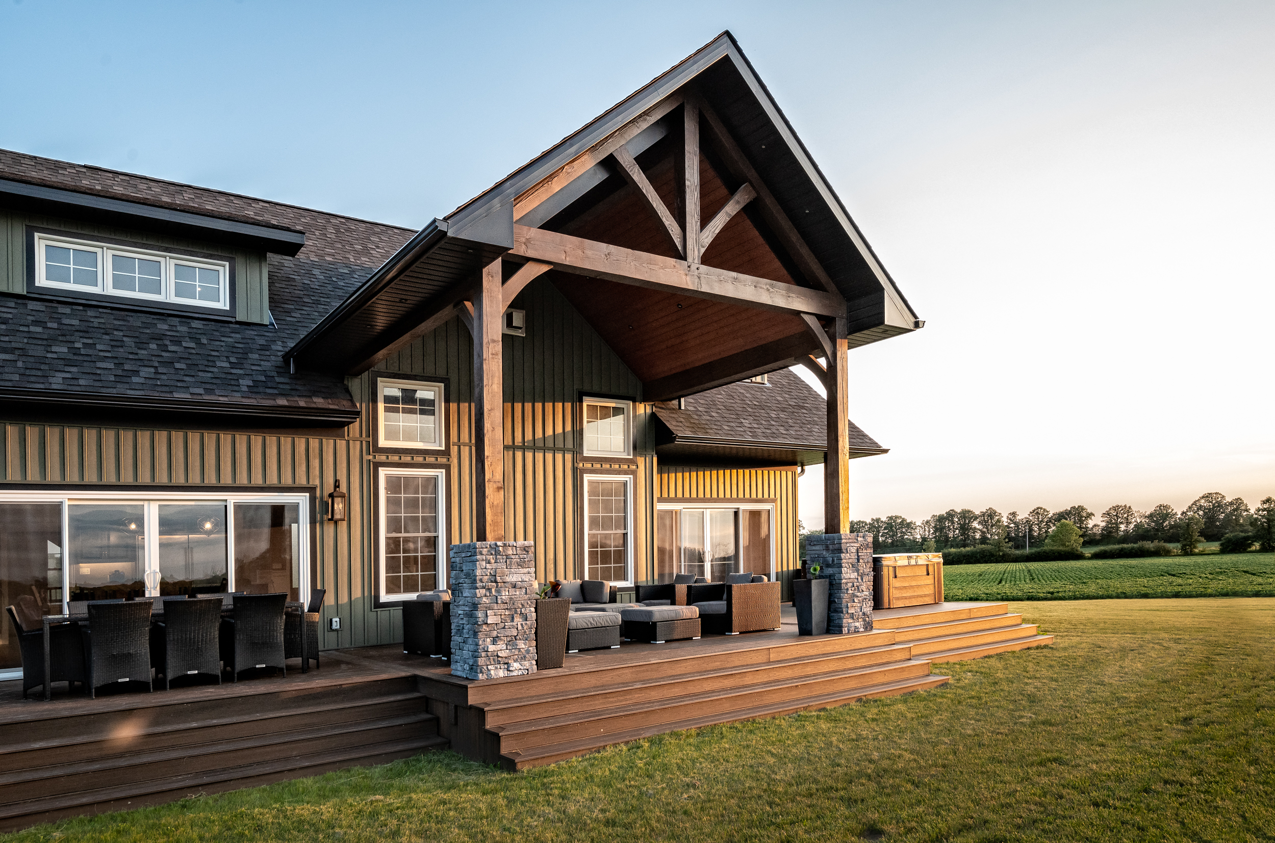 Beyond the wide open spaces and the outdoor activities, moving to the country meant they could build their dream home instead of living inside of someone else’s vision. “We both lived in town in Lindsay, so we know what it’s like to have neighbours on top of you,” Jon says. “You walk out the front door or the back door, and there are balconies and porches right beside you. It just wasn’t for us.” And while there’s no shortage of large farmhouses on massive properties throughout rural Ontario, they didn’t relish the idea of maintaining an older house. They wanted a builder to customize a new home just for them, and the choice to go with Beaver Homes & Cottages was a no-brainer. “My parents built a home with Beaver years ago, and they were happy with how they were able to make any changes they wanted,” Jon says. “We liked a lot of the existing models in the Design Book, and we knew that we could customize them, but we already had something in mind.”