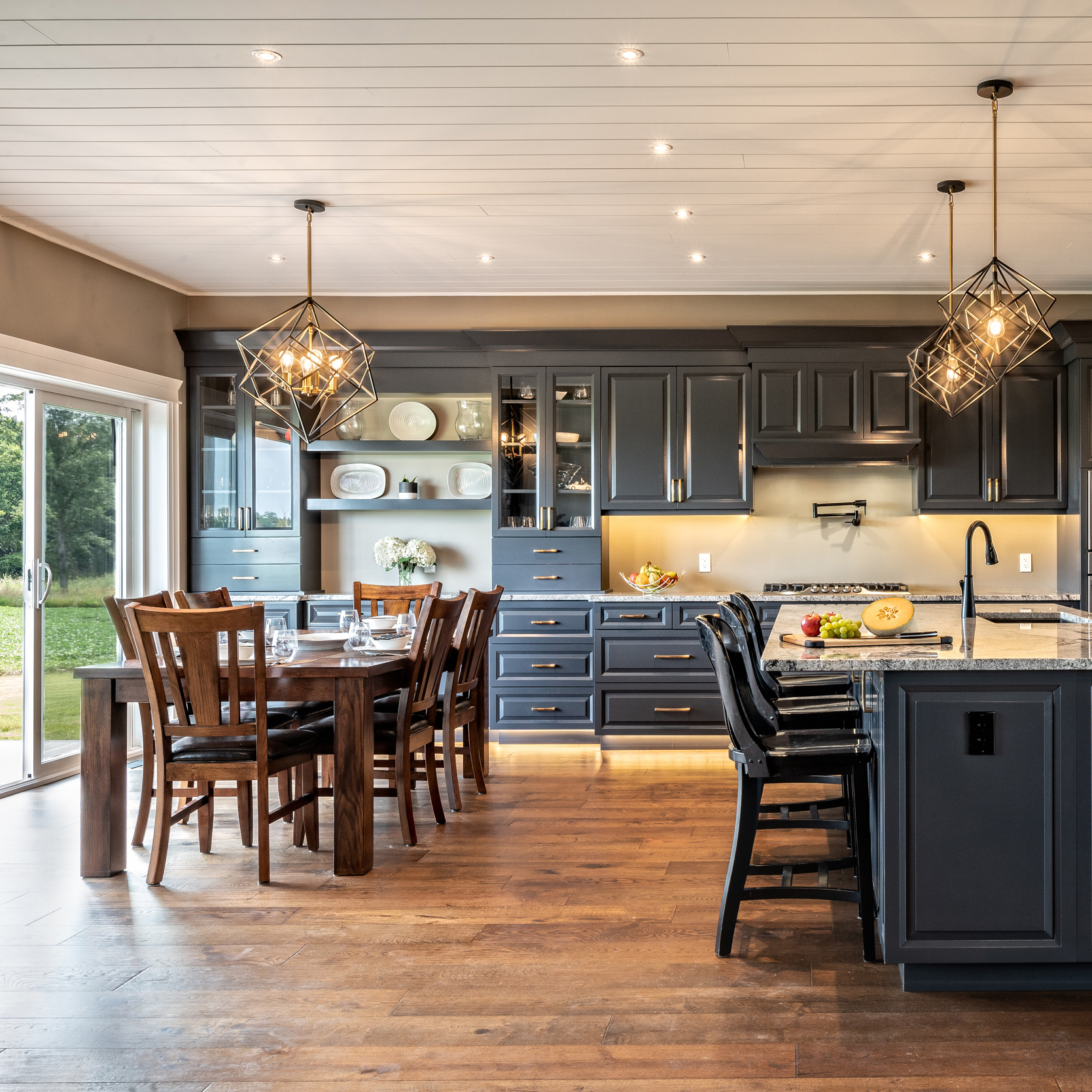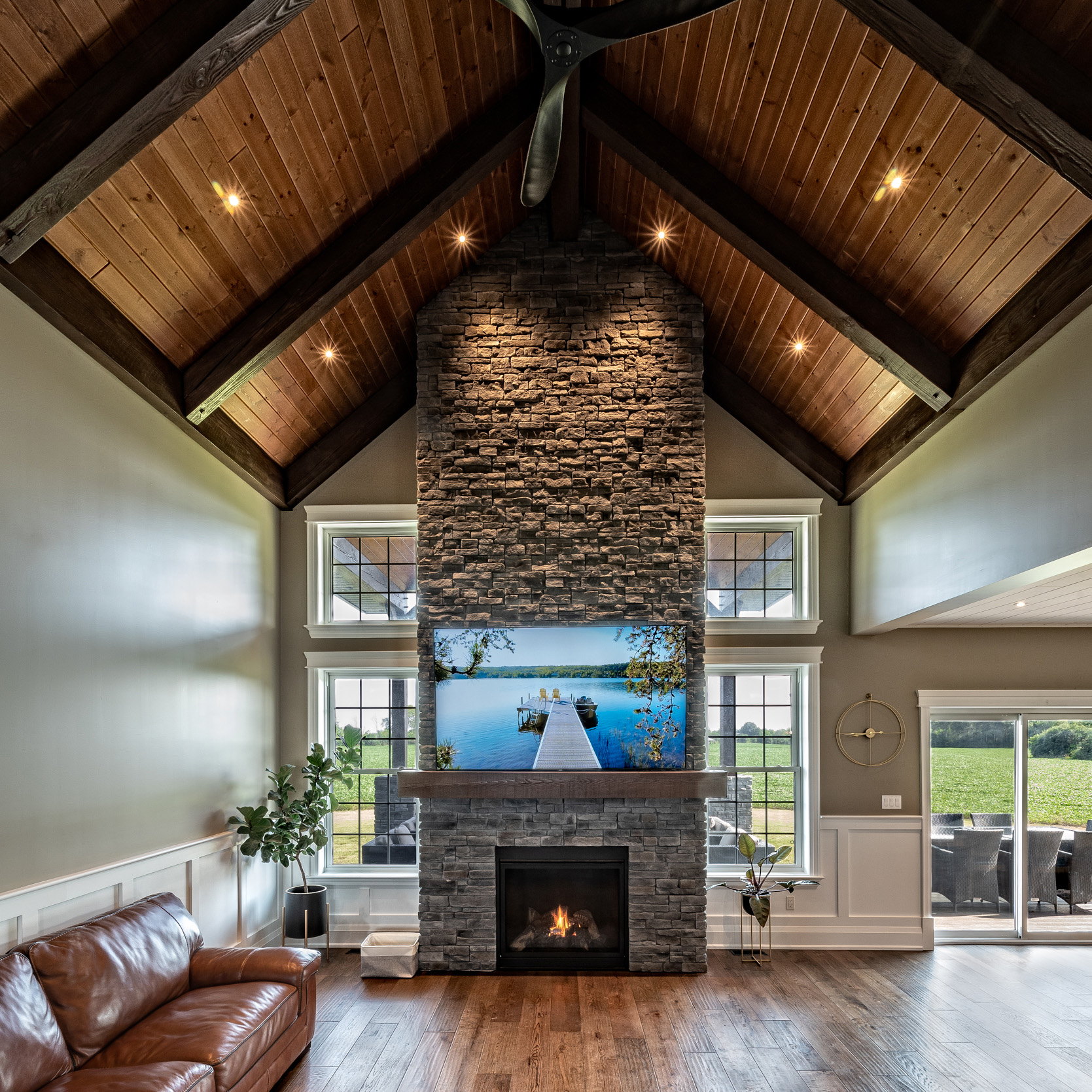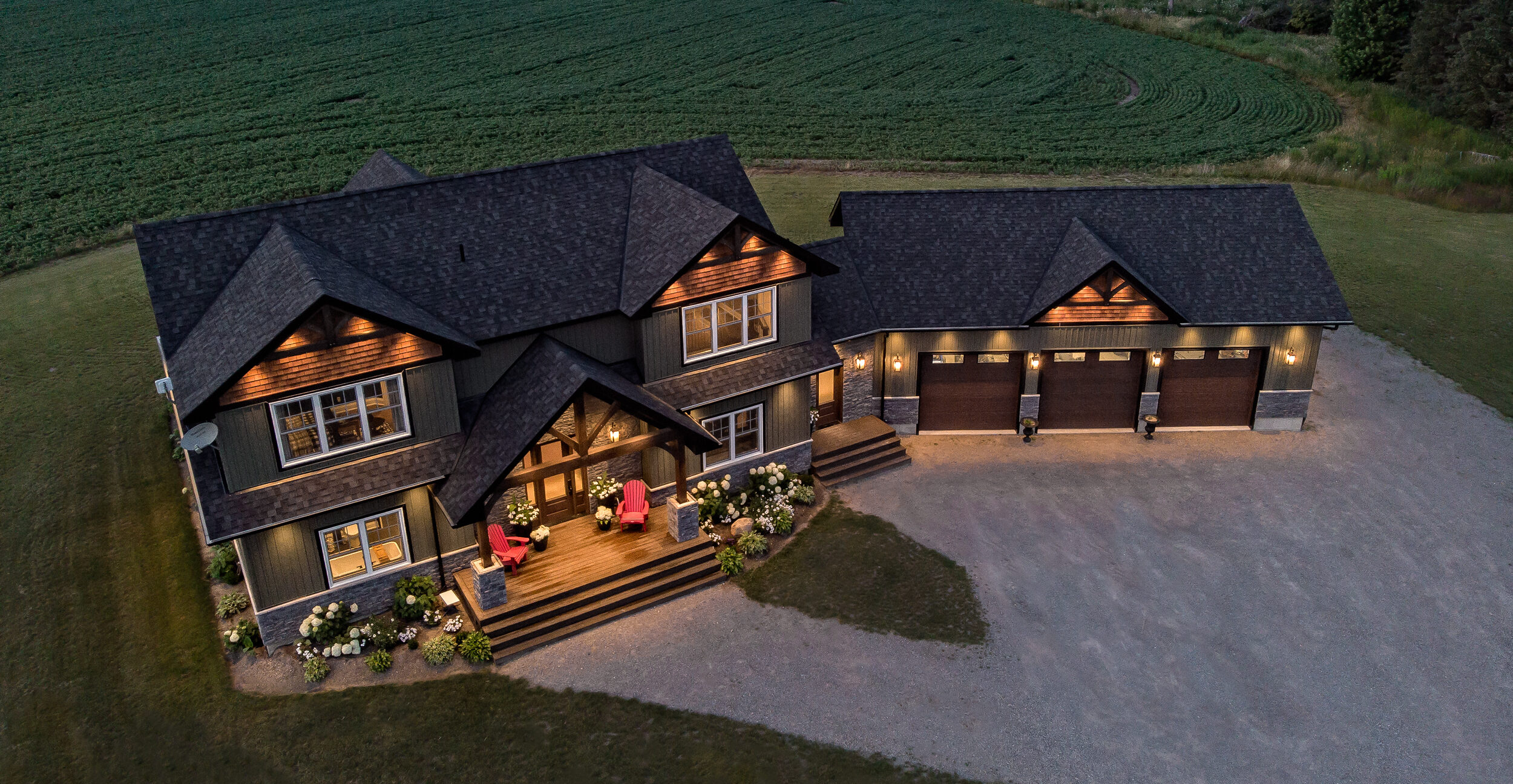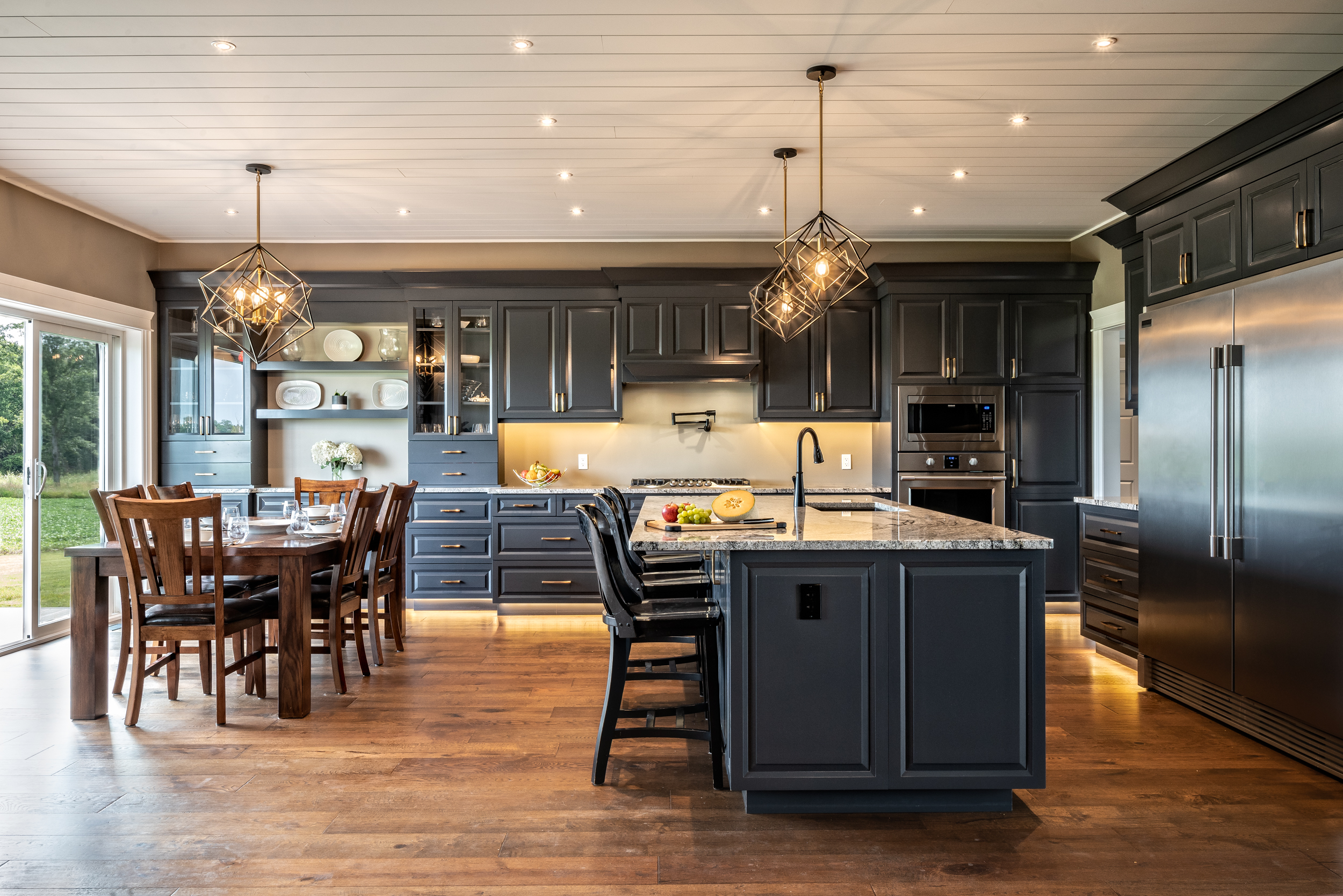 Beyond the wide open spaces and the outdoor activities, moving to the country meant they could build their dream home instead of living inside of someone else’s vision. “We both lived in town in Lindsay, so we know what it’s like to have neighbours on top of you,” Jon says. “You walk out the front door or the back door, and there are balconies and porches right beside you. It just wasn’t for us.” And while there’s no shortage of large farmhouses on massive properties throughout rural Ontario, they didn’t relish the idea of maintaining an older house. They wanted a builder to customize a new home just for them, and the choice to go with Beaver Homes & Cottages was a no-brainer. “My parents built a home with Beaver years ago, and they were happy with how they were able to make any changes they wanted,” Jon says. “We liked a lot of the existing models in the Design Book, and we knew that we could customize them, but we already had something in mind.”