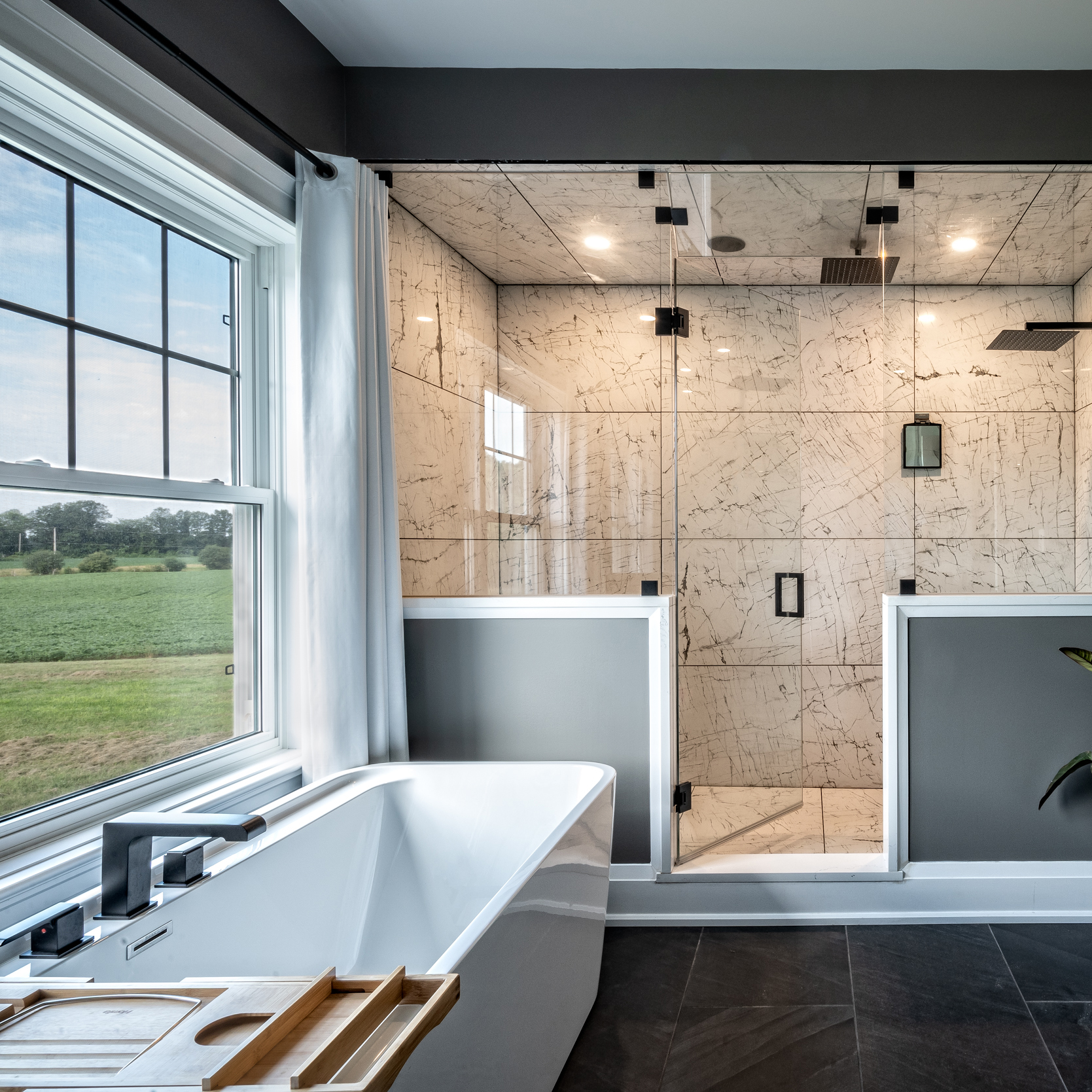 The ability to customize existing plans or create new ones is a core part of the Beaver Homes & Cottages process, and John Ireland, the design consultant at the Lindsay Design Centre, was their main contact who helped them realize their vision. “Ashley had a bunch of pictures from a house she absolutely fell in love with, and our challenge was to take inspiration from those pictures and produce a set of architectural plans that would capture everything on their wish list while fitting on the property,” John explains. In addition to creating the plans, tweaking them according to the Millars’ requests, and guiding the overall process, John’s team at the Lindsay Design Centre also provided nearly all of the finishing materials for the home. “Beaver Homes & Cottages is a one-stop shop,” he says. “We have everything under one roof here, so you can choose all your finishes, and there’s no need to travel all over the countryside trying to source materials.”